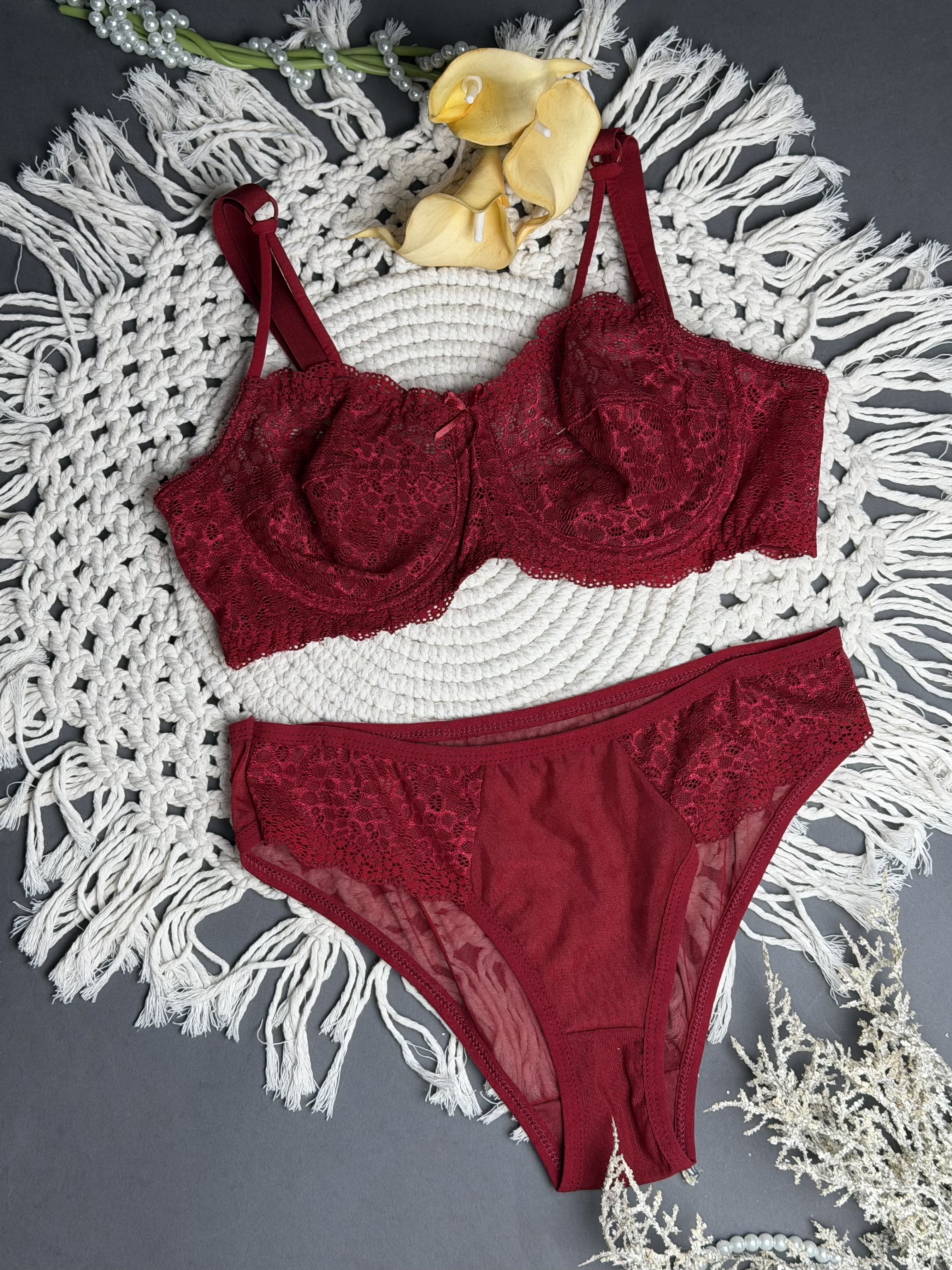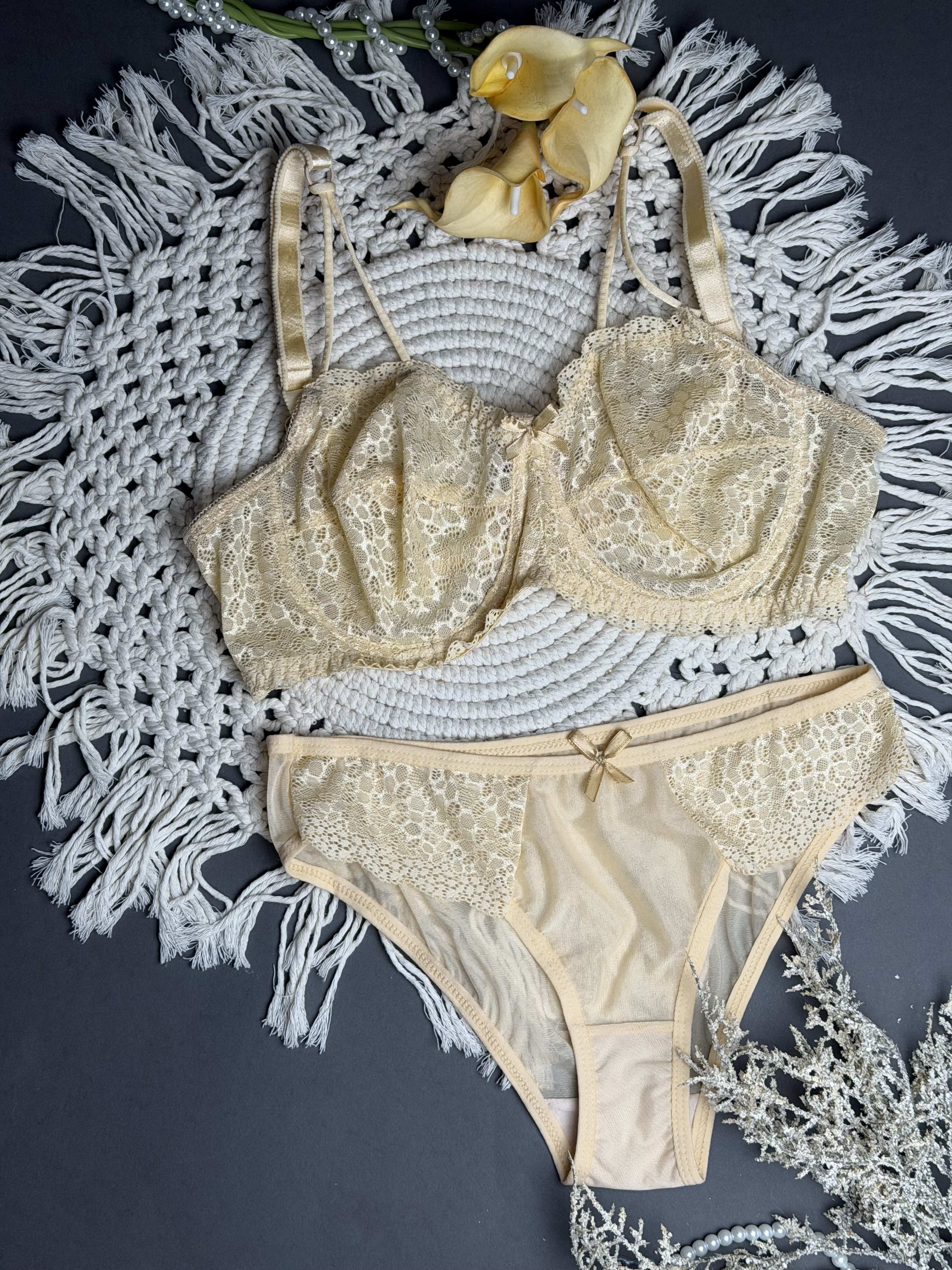 ست شورت و سوتین فنردار توری دانتل هارنس دار برند الا کد ۲۰۲۰