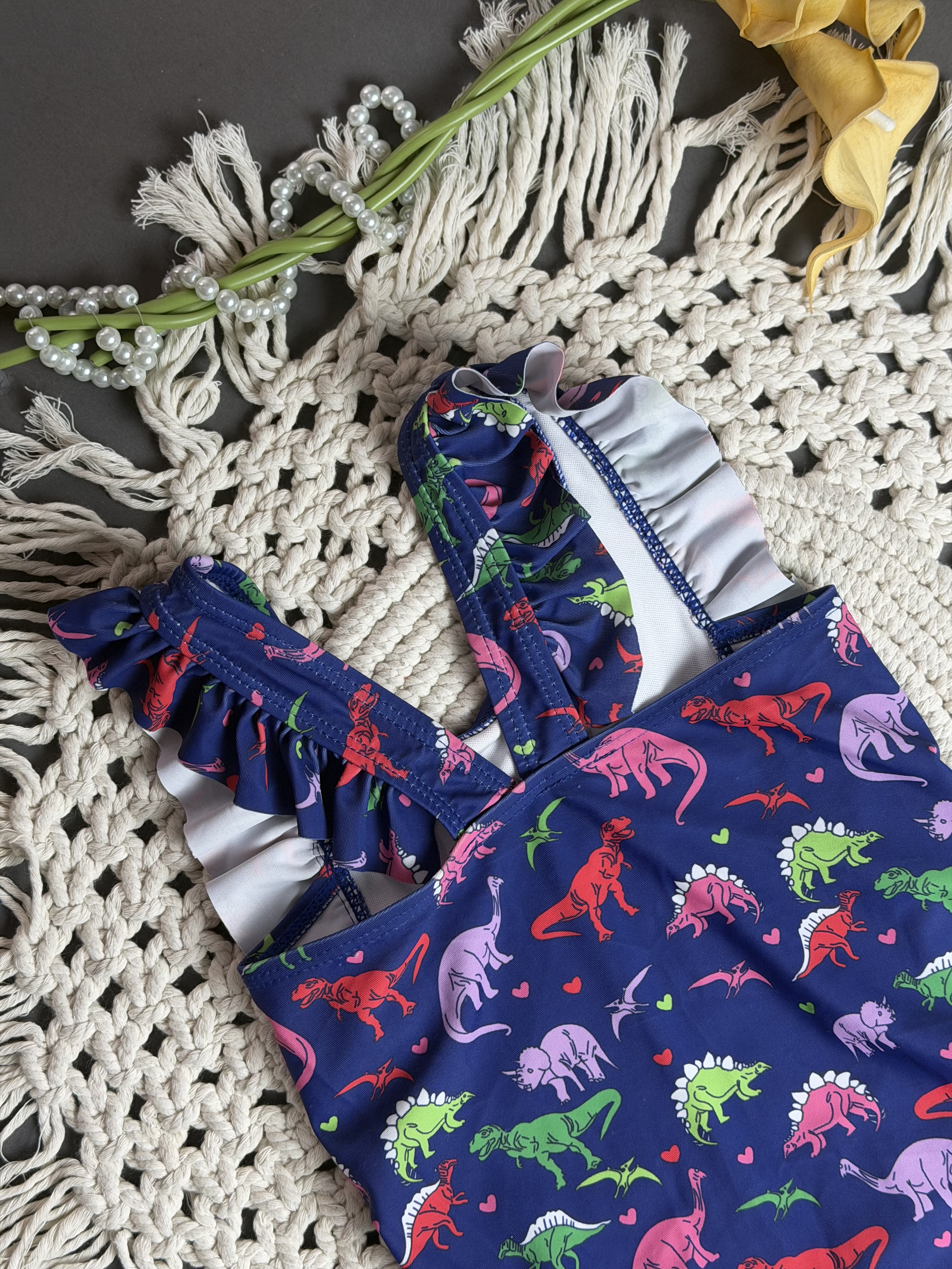 مایو بچگانه دخترانه وارداتی ضد کلر و ضد حساسیت فانتزی طرح دایناسور