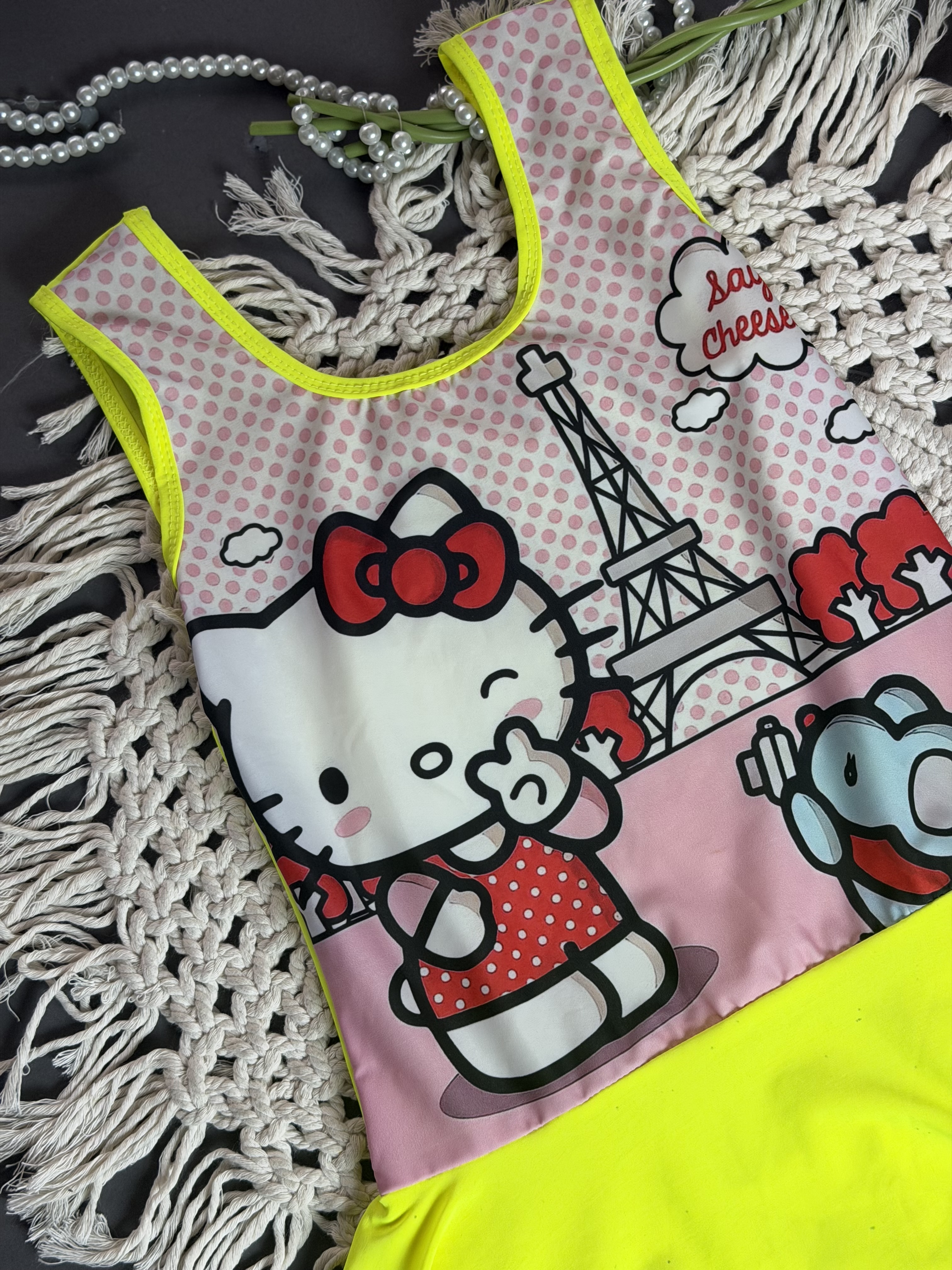 مایو بچگانه دخترانه کلاهدار ضد کلر و ضد حساسیت فانتزی طرح کیتی