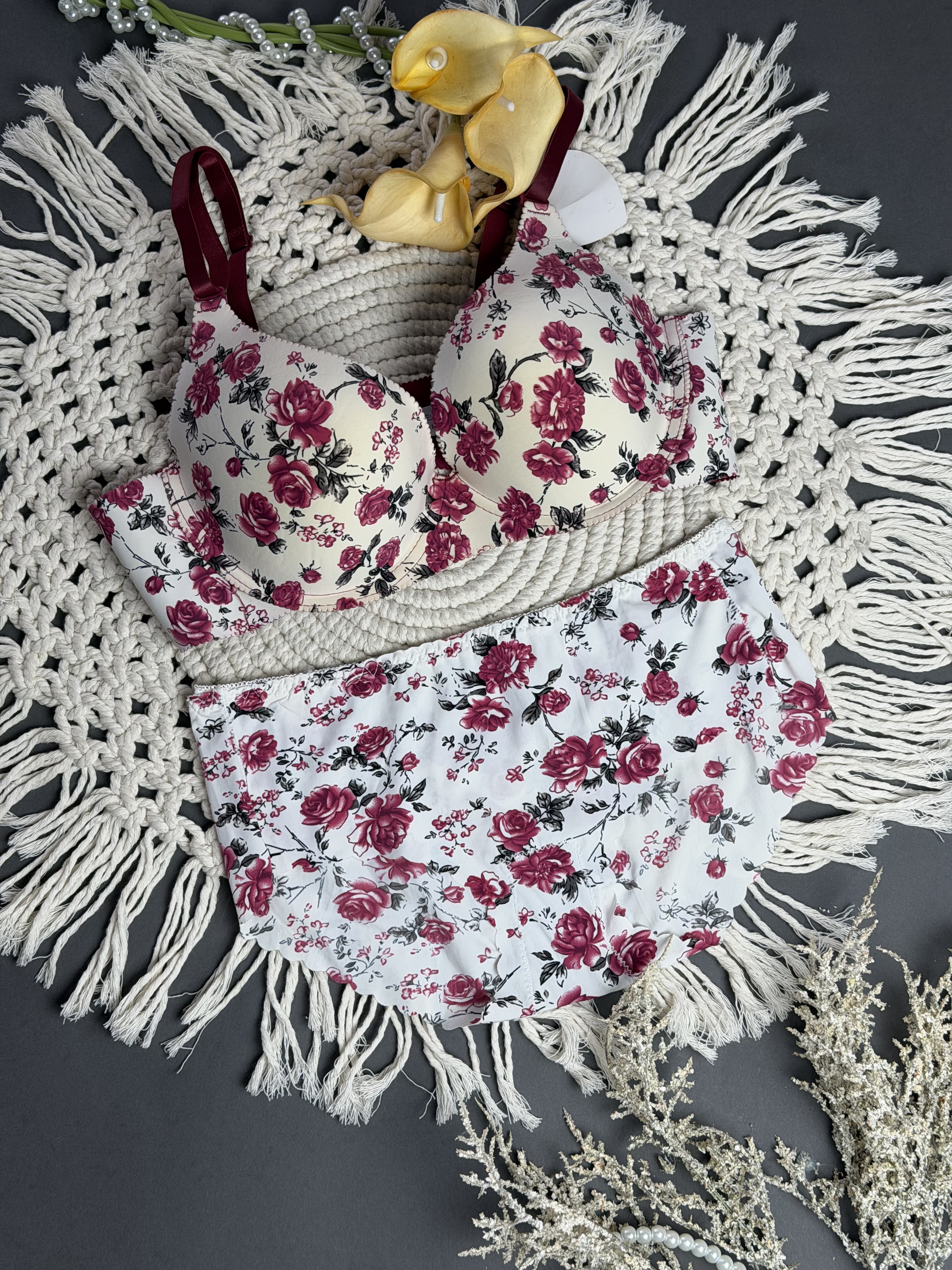 ست شورت و سوتین اسفنجی لیزری نیم جک گل گلی ریز کد ۲۰۱۲