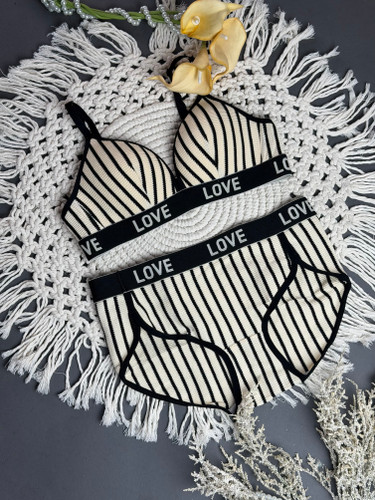 ست شورت و سوتین اسفنجی نخی راه راه کد ۲۰۱۰
