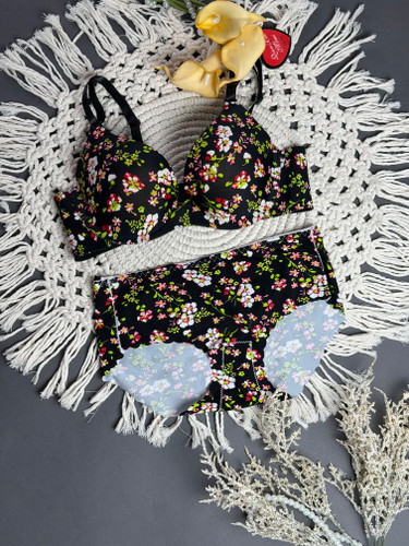 ست شورت و سوتین اسفنجی لیزری نیم جک گل گلی ریز کد ۲۰۱۲
