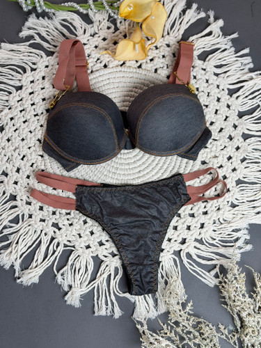 ست شورت و سوتین اسفنجی جین جک دار کد ۲۰۱۵